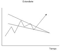 EstandartesLas formaciones de estandarte, (una variación de las banderitas) son completamente análogas a las banderitas, solo que en este tipo de figuras el estrechamiento bajista de los precios no se produce de forma rectangular, sino que lo hace de forma triangular.