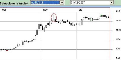 Se presenta en una tendencia alcista, y marcaría el final de la tendencia y probablemente un cambio de la misma (disminución de precios).